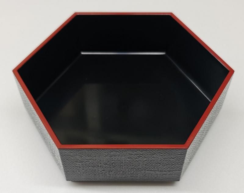 新6寸六角布目松花堂 親のみ 黒天朱(21076202)